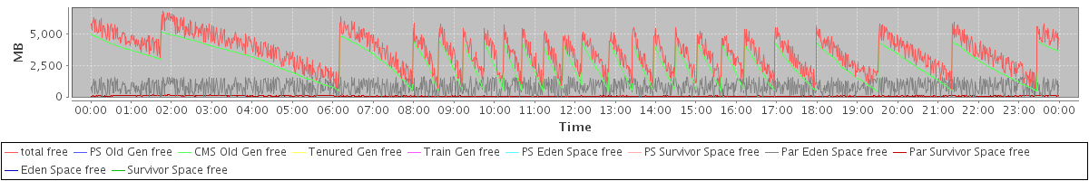 avg(total free) = 3579.81 avg(PS Old Gen free) = 0.00 avg(CMS Old Gen free) = 2698.50 avg(Tenured Gen free) = 0.00 avg(Train Gen free) = 0.00 avg(PS Eden Space free) = 0.00 avg(PS Survivor Space free) = 0.00 avg(Par Eden Space free) = 818.50 avg(Par Survivor Space free) = 62.81 avg(Eden Space free) = 0.00 avg(Survivor Space free) = 0.00
