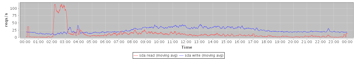avg(sda read) = 11.96 avg(sda write) = 24.86