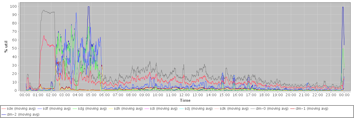 avg(sde) = 11.35 avg(sdf) = 9.30 avg(sdg) = 6.88 avg(sdh) = 1.43 avg(sdi) = 11.27 avg(sdj) = 9.26 avg(sdk) = 6.87 avg(dm-0) = 18.78 avg(dm-1) = 2.14 avg(dm-2) = 8.10