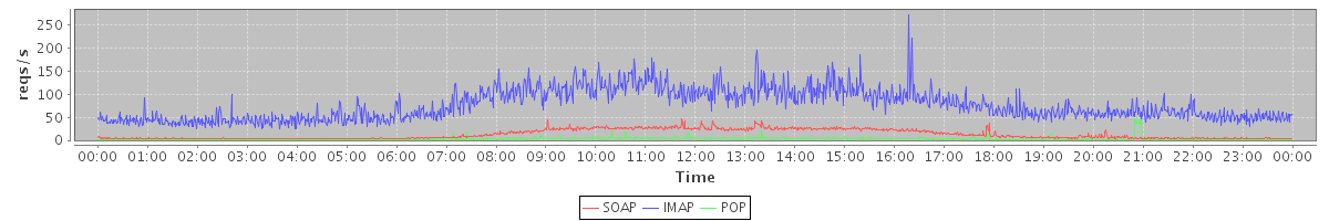 Host zm09.stanford.edu: Mailboxd: Request Rate by Client Protocol