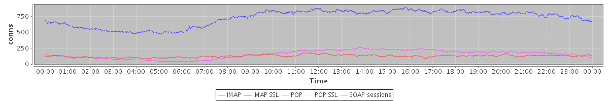 avg(IMAP) = 125.77 avg(IMAP SSL) = 722.55 avg(POP) = 0.09 avg(POP SSL) = 1.18 avg(SOAP sessions) = 154.04