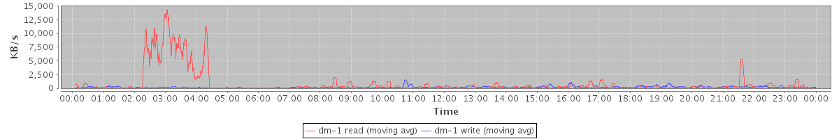 avg(dm-1 read) = 857.71 avg(dm-1 write) = 187.25