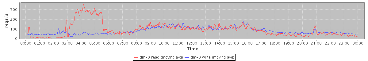 avg(dm-1 read) = 825.42 avg(dm-1 write) = 1356.12