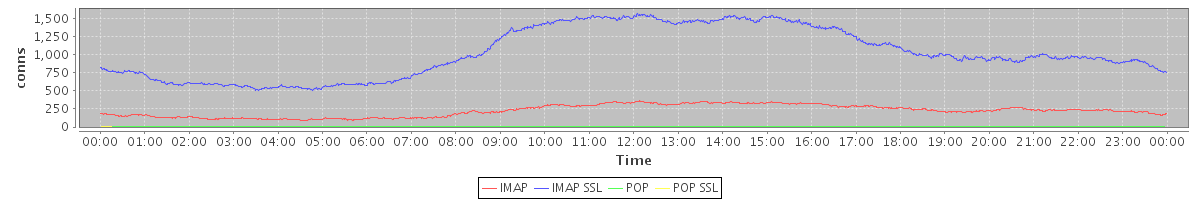 Host zm04.stanford.edu: Mailboxd: Active Connections by Client Protocol