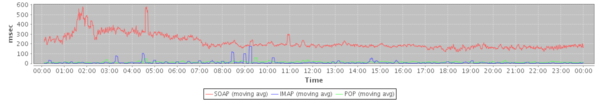 Host zm21.stanford.edu: Mailboxd: Response Time by Client Protocol