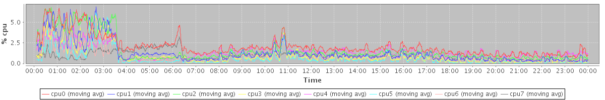 avg(cpu0) = 24.03 avg(cpu1) = 1.04 avg(cpu2) = 0.82 avg(cpu3) = 0.38 avg(cpu4) = 1.85 avg(cpu5) = 0.23 avg(cpu6) = 0.39 avg(cpu7) = 17.36