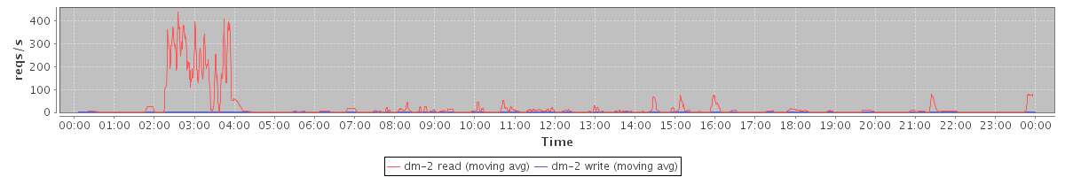 avg(dm-2 read) = 16.08 avg(dm-2 write) = 0.96