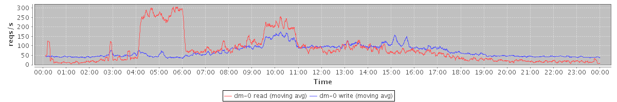 avg(dm-1 read) = 36.83 avg(dm-1 write) = 0.10