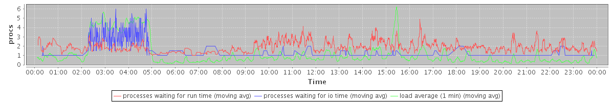 avg(processes waiting for run time) = 1.38 avg(processes waiting for io time) = 0.44 avg(load average (1 min)) = 1.14