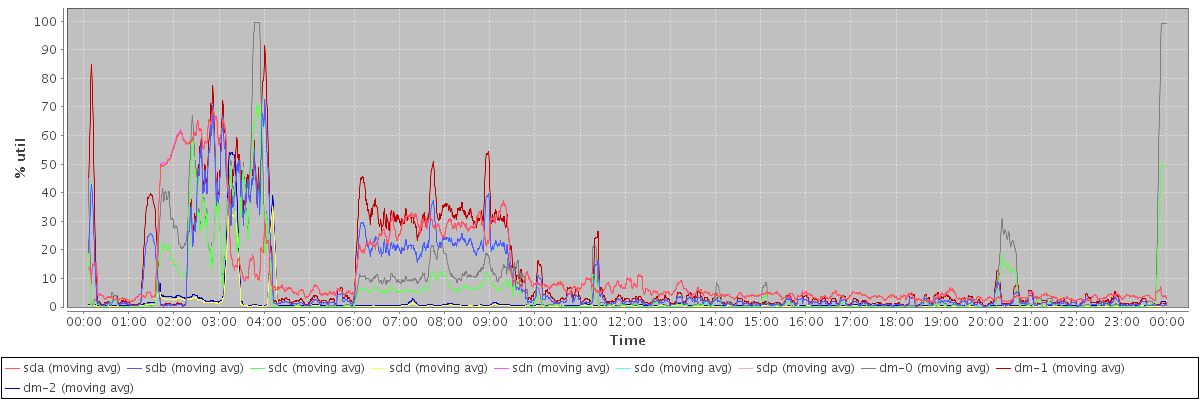avg(sda) = 11.93 avg(sdb) = 8.57 avg(sdc) = 5.45 avg(sdd) = 0.98 avg(sdn) = 11.94 avg(sdo) = 8.57 avg(sdp) = 5.45 avg(dm-0) = 8.13 avg(dm-1) = 11.59 avg(dm-2) = 1.53