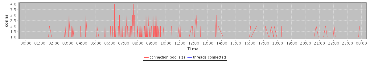 avg(connection pool size) = 0.43 avg(threads connected) = 0.00
