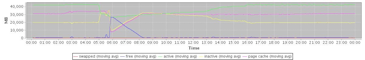 avg(swapped) = 6.42 avg(free) = 1897.28 avg(active) = 37973.09 avg(inactive) = 22707.18 avg(page cache) = 29801.96
