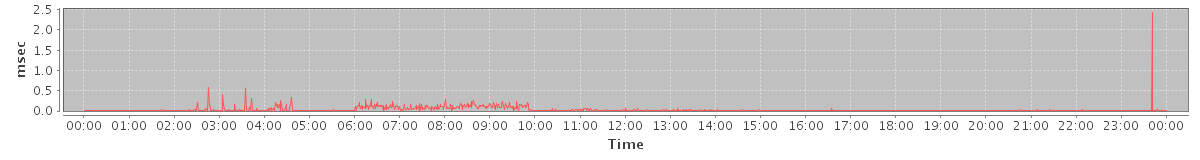 avg(SendMsgRequest) = 504.06 avg(DeleteAccountRequest) = 9511.67 avg(BackupQueryRequest) = 303.00 avg(GetAggregateQuotaUsageOnServerRequest) = 2938.00 avg(CreateAppointmentExceptionRequest) = 574.00 avg(ForwardAppointmentInviteRequest) = 281.00 avg(SendInviteReplyRequest) = 403.00 avg(FolderActionRequest.empty) = 2107.33 avg(BackupRequest) = 15742.50 avg(GetQuotaUsageRequest) = 4057.00