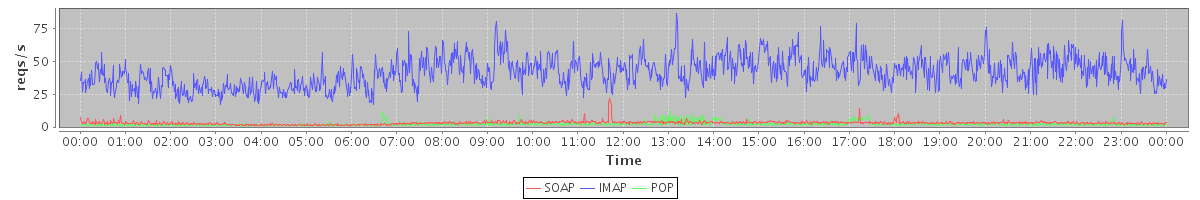 Host zm07.stanford.edu: Mailboxd: Request Rate by Client Protocol