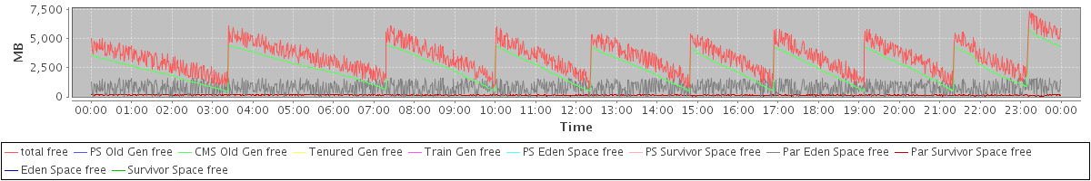 avg(total free) = 3439.73 avg(PS Old Gen free) = 0.00 avg(CMS Old Gen free) = 2493.87 avg(Tenured Gen free) = 0.00 avg(Train Gen free) = 0.00 avg(PS Eden Space free) = 0.00 avg(PS Survivor Space free) = 0.00 avg(Par Eden Space free) = 797.91 avg(Par Survivor Space free) = 147.94 avg(Eden Space free) = 0.00 avg(Survivor Space free) = 0.00
