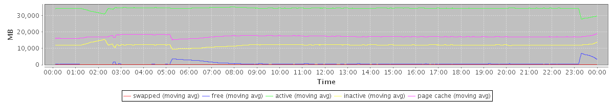 avg(swapped) = 10.83 avg(free) = 788.60 avg(active) = 34308.03 avg(inactive) = 12015.96 avg(page cache) = 17253.82