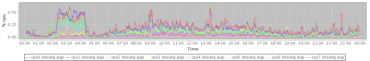 avg(cpu0) = 0.21 avg(cpu1) = 0.23 avg(cpu2) = 0.07 avg(cpu3) = 0.08 avg(cpu4) = 0.05 avg(cpu5) = 0.08 avg(cpu6) = 0.04 avg(cpu7) = 0.02