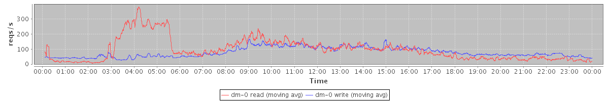 avg(dm-1 read) = 5.08 avg(dm-1 write) = 36.59