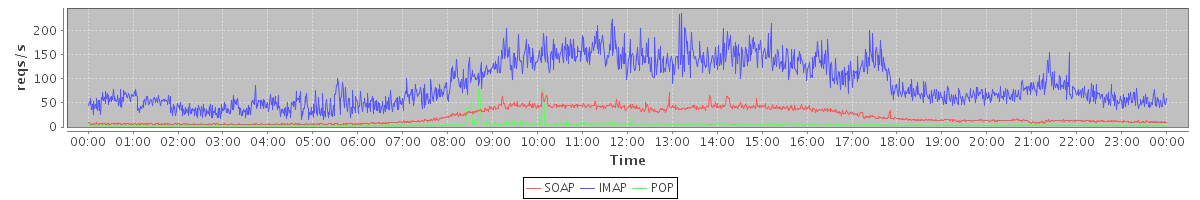 Host zm05.stanford.edu: Mailboxd: Request Rate by Client Protocol