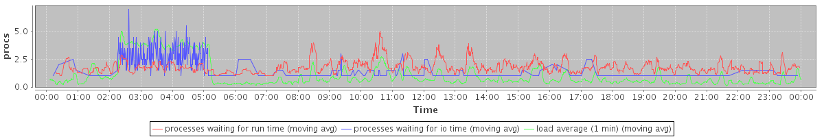 avg(processes waiting for run time) = 1.15 avg(processes waiting for io time) = 0.43 avg(load average (1 min)) = 1.08