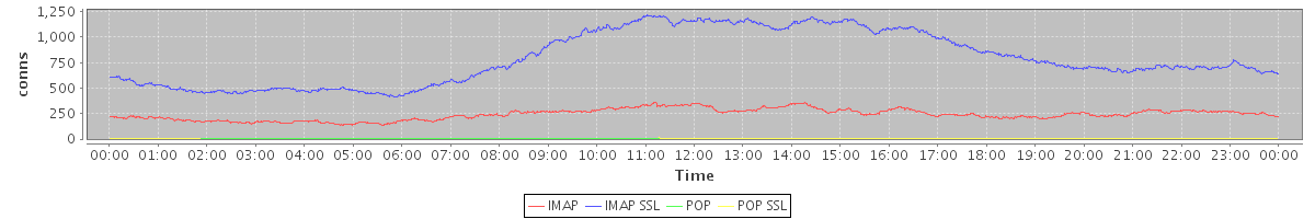 Host zm03.stanford.edu: Mailboxd: Active Connections by Client Protocol