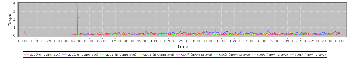 avg(cpu0) = 0.13 avg(cpu1) = 0.20 avg(cpu2) = 0.05 avg(cpu3) = 0.07 avg(cpu4) = 0.06 avg(cpu5) = 0.04 avg(cpu6) = 0.06 avg(cpu7) = 0.06
