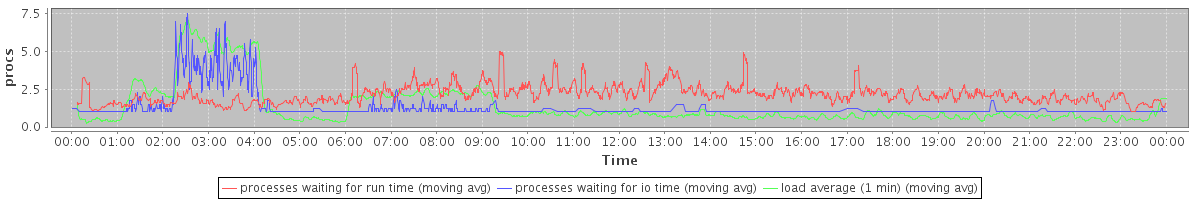avg(processes waiting for run time) = 1.71 avg(processes waiting for io time) = 0.62 avg(load average (1 min)) = 1.38