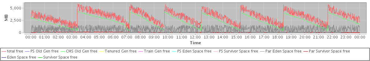 avg(total free) = 3292.44 avg(PS Old Gen free) = 0.00 avg(CMS Old Gen free) = 2408.07 avg(Tenured Gen free) = 0.00 avg(Train Gen free) = 0.00 avg(PS Eden Space free) = 0.00 avg(PS Survivor Space free) = 0.00 avg(Par Eden Space free) = 787.64 avg(Par Survivor Space free) = 96.73 avg(Eden Space free) = 0.00 avg(Survivor Space free) = 0.00