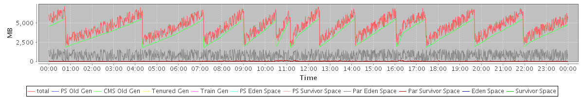 avg(total) = 4567.78 avg(PS Old Gen) = 0.00 avg(CMS Old Gen) = 3716.64 avg(Tenured Gen) = 0.00 avg(Train Gen) = 0.00 avg(PS Eden Space) = 0.00 avg(PS Survivor Space) = 0.00 avg(Par Eden Space) = 802.94 avg(Par Survivor Space) = 48.20 avg(Eden Space) = 0.00 avg(Survivor Space) = 0.00