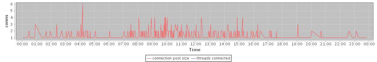avg(connection pool size) = 0.46 avg(threads connected) = 0.00