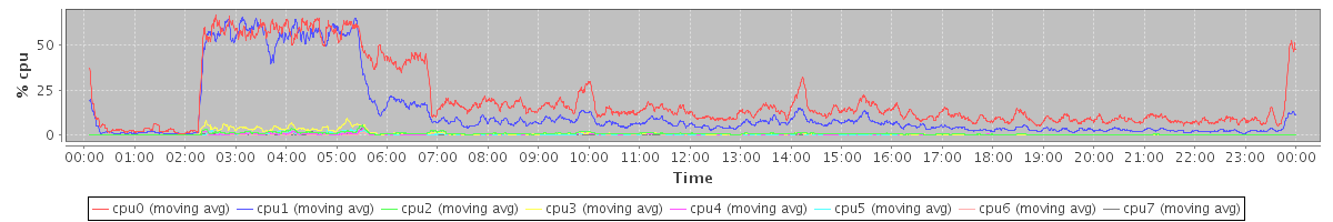 avg(cpu0) = 0.35 avg(cpu1) = 0.35 avg(cpu2) = 0.29 avg(cpu3) = 0.33 avg(cpu4) = 0.21 avg(cpu5) = 0.21 avg(cpu6) = 0.12 avg(cpu7) = 0.13