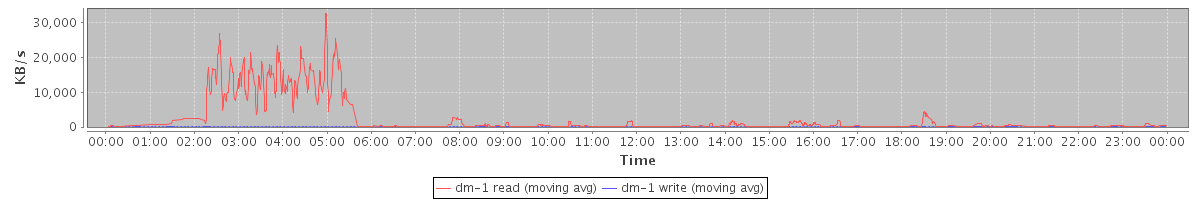 avg(dm-1 read) = 32.73 avg(dm-1 write) = 0.06