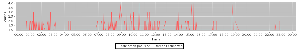 avg(connection pool size) = 0.42 avg(threads connected) = 0.00