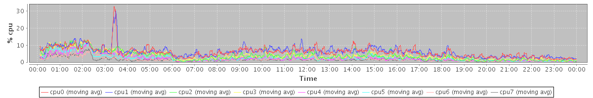 avg(cpu0) = 1.41 avg(cpu1) = 1.49 avg(cpu2) = 1.24 avg(cpu3) = 1.30 avg(cpu4) = 0.88 avg(cpu5) = 0.87 avg(cpu6) = 0.54 avg(cpu7) = 0.49