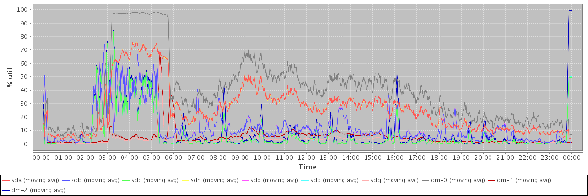 avg(sda) = 26.18 avg(sdb) = 12.67 avg(sdc) = 7.08 avg(sdn) = 26.20 avg(sdo) = 12.68 avg(sdp) = 7.08 avg(sdq) = 3.00 avg(dm-0) = 39.54 avg(dm-1) = 4.84 avg(dm-2) = 9.07