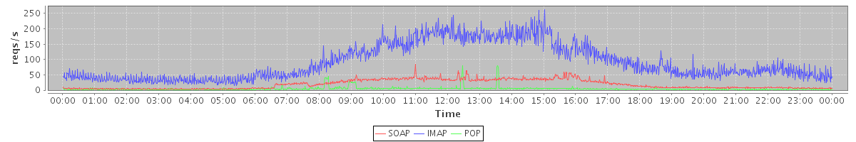 Host zm05.stanford.edu: Mailboxd: Request Rate by Client Protocol