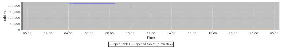avg(open_tables) = 1189.41 avg(opened_tables (cumulative)) = 219617.81