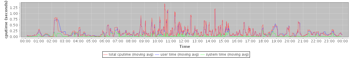 avg(total cputime) = 0.10 avg(user time) = 0.09 avg(system time) = 0.01