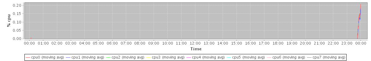 avg(cpu0) = 0.16 avg(cpu1) = 0.19 avg(cpu2) = 0.16 avg(cpu3) = 0.16 avg(cpu4) = 0.08 avg(cpu5) = 0.08 avg(cpu6) = 0.03 avg(cpu7) = 0.03