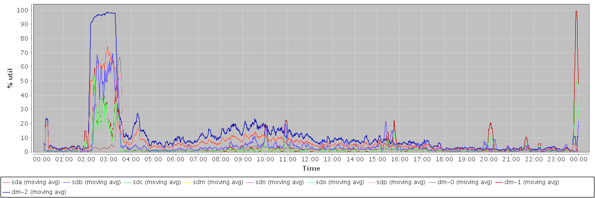 avg(sda) = 7.59 avg(sdb) = 5.35 avg(sdc) = 2.62 avg(sdm) = 7.57 avg(sdn) = 5.35 avg(sdo) = 2.62 avg(sdp) = 1.24 avg(dm-0) = 1.93 avg(dm-1) = 3.70 avg(dm-2) = 12.27
