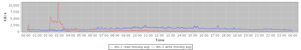 avg(dm-2 read) = 26.35 avg(dm-2 write) = 47.74