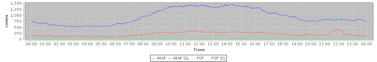 avg(IMAP) = 214.17 avg(IMAP SSL) = 952.70 avg(POP) = 0.20 avg(POP SSL) = 0.99