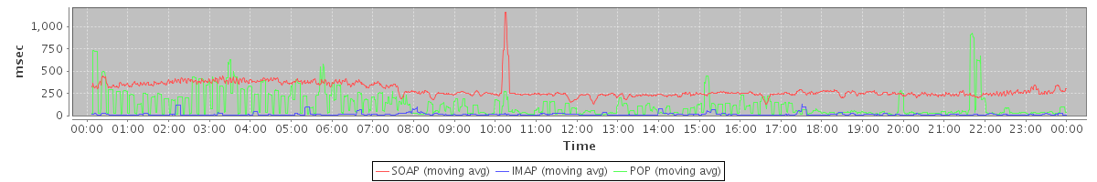 avg(IMAP) = 186.12 avg(IMAP SSL) = 848.93 avg(POP) = 0.04 avg(POP SSL) = 2.14