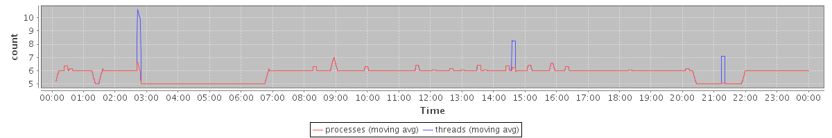 avg(processes) = 5.78 avg(threads) = 5.82
