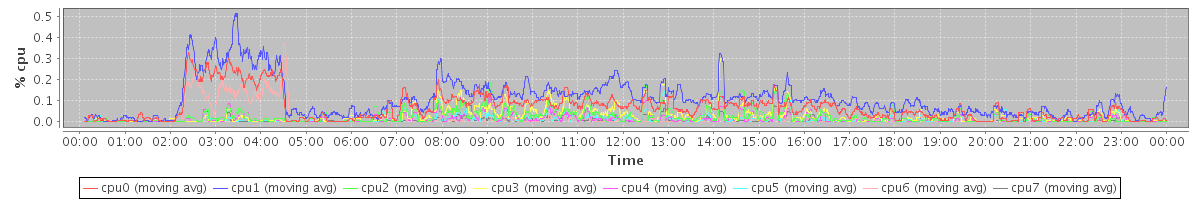 avg(cpu0) = 0.07 avg(cpu1) = 0.11 avg(cpu2) = 0.02 avg(cpu3) = 0.03 avg(cpu4) = 0.01 avg(cpu5) = 0.01 avg(cpu6) = 0.02 avg(cpu7) = 0.01