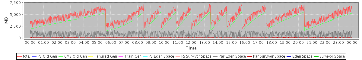 avg(total) = 4522.87 avg(PS Old Gen) = 0.00 avg(CMS Old Gen) = 3558.35 avg(Tenured Gen) = 0.00 avg(Train Gen) = 0.00 avg(PS Eden Space) = 0.00 avg(PS Survivor Space) = 0.00 avg(Par Eden Space) = 817.75 avg(Par Survivor Space) = 146.77 avg(Eden Space) = 0.00 avg(Survivor Space) = 0.00