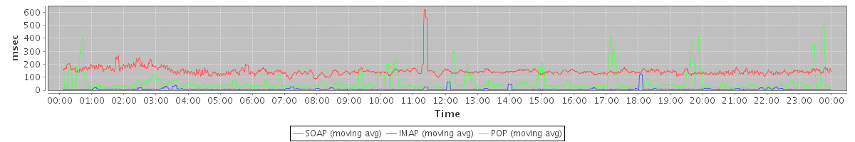 Host zm03.stanford.edu: Mailboxd: Response Time by Client Protocol