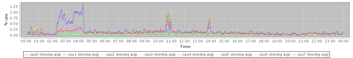 avg(cpu0) = 0.11 avg(cpu1) = 0.18 avg(cpu2) = 0.07 avg(cpu3) = 0.06 avg(cpu4) = 0.07 avg(cpu5) = 0.03 avg(cpu6) = 0.02 avg(cpu7) = 0.01