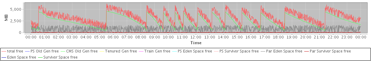 avg(total free) = 3349.61 avg(PS Old Gen free) = 0.00 avg(CMS Old Gen free) = 2474.48 avg(Tenured Gen free) = 0.00 avg(Train Gen free) = 0.00 avg(PS Eden Space free) = 0.00 avg(PS Survivor Space free) = 0.00 avg(Par Eden Space free) = 818.60 avg(Par Survivor Space free) = 56.53 avg(Eden Space free) = 0.00 avg(Survivor Space free) = 0.00
