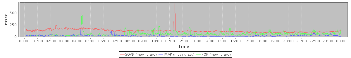 avg(IMAP) = 200.50 avg(IMAP SSL) = 751.11 avg(POP) = 0.01 avg(POP SSL) = 0.50